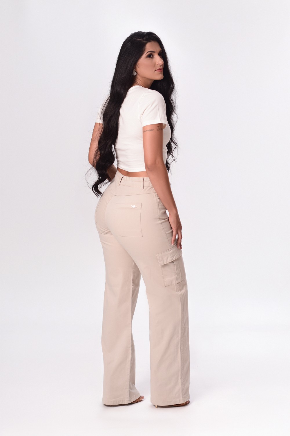 CALCA SARJA ELAST FEM WIDE LEG CARGO PALHA