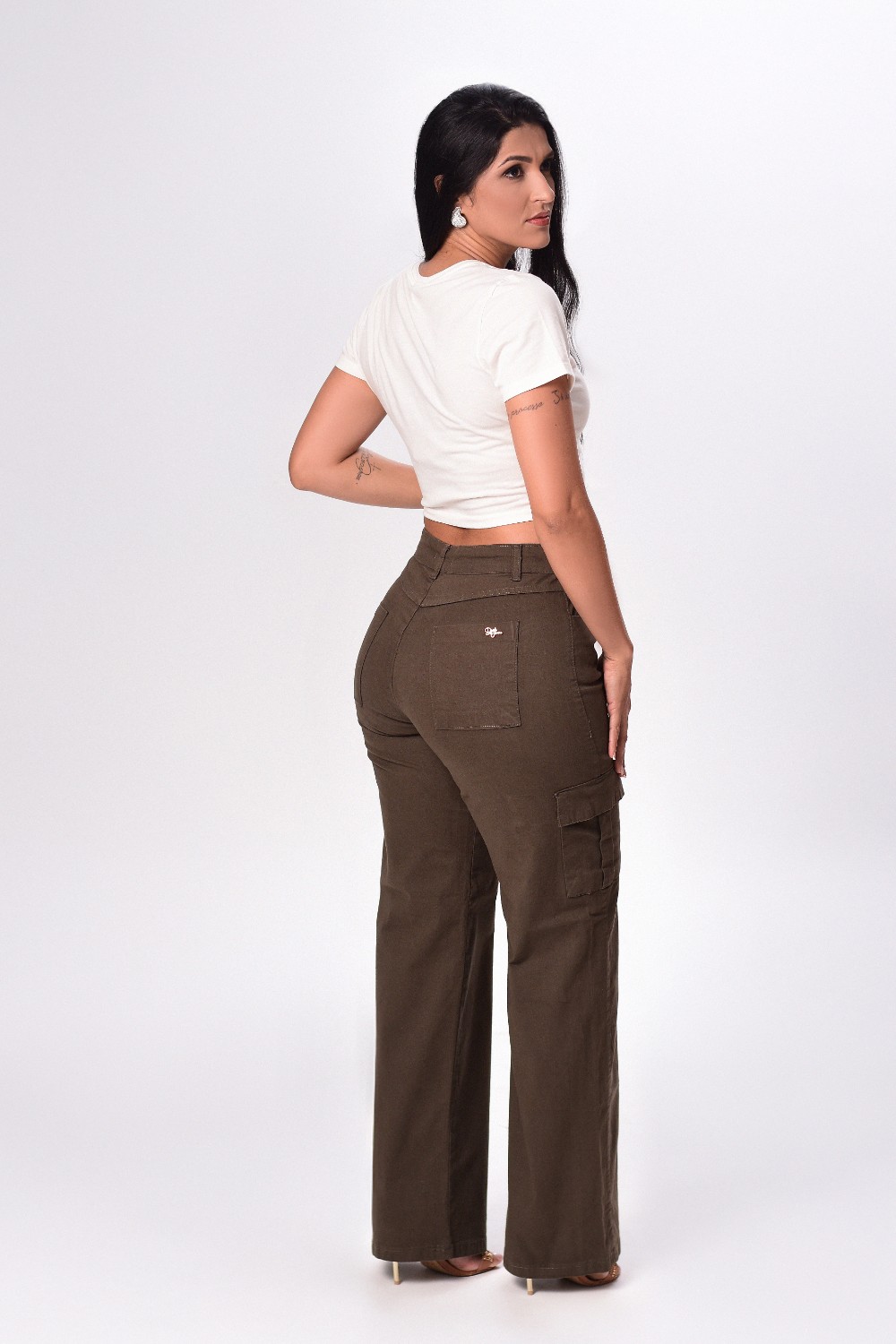 CALCA SARJA ELAST FEM WIDE LEG CARGO VERDE